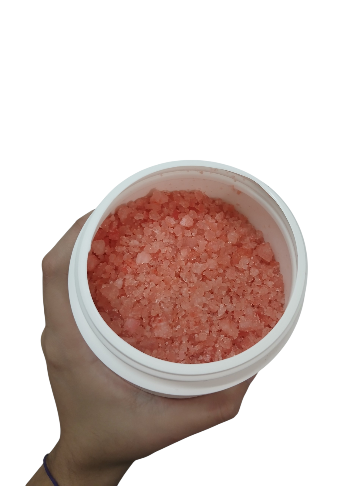 1 kg sal de baño aromatica fragancia frutos rojos con envase pote de plastico de 1 kg.