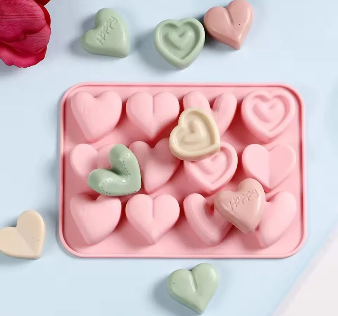 Molde silicona corazones para bombones jabones color rosa